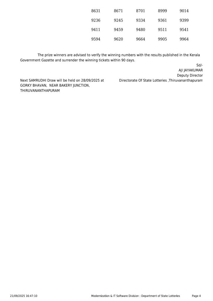 Kerala Lottery SAMRUDHI SM 21 Result 21.09.2025 Leave a Comment on Kerala Lottery SAMRUDHI SM 21 Result 21.09.2025 Posted in Kerala Lottery Result