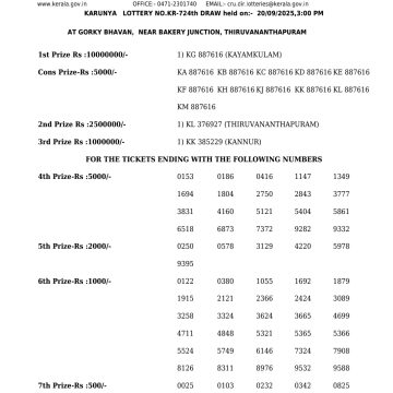 Kerala Lottery KARUNYA KR 724 Result 20.09.2025