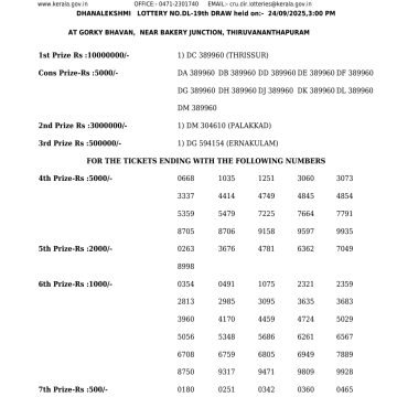 Kerala Lottery DHANALEKSMI DL 19 Result 24.09.2025