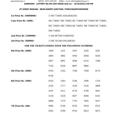 • Kerala Lottery Result: Samrudhi SM 25 19 October 2025